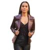 Women’s Burgundy Leather Biker Jacket