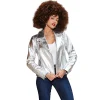• Asymmetrical front zipper and wide lapel design deliver the signature biker edge.