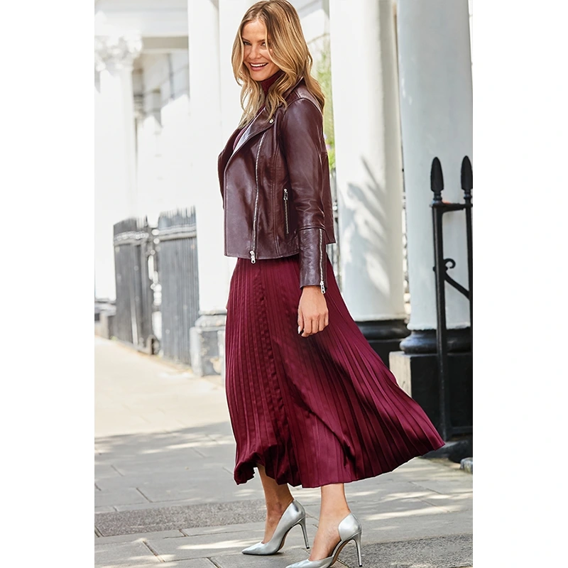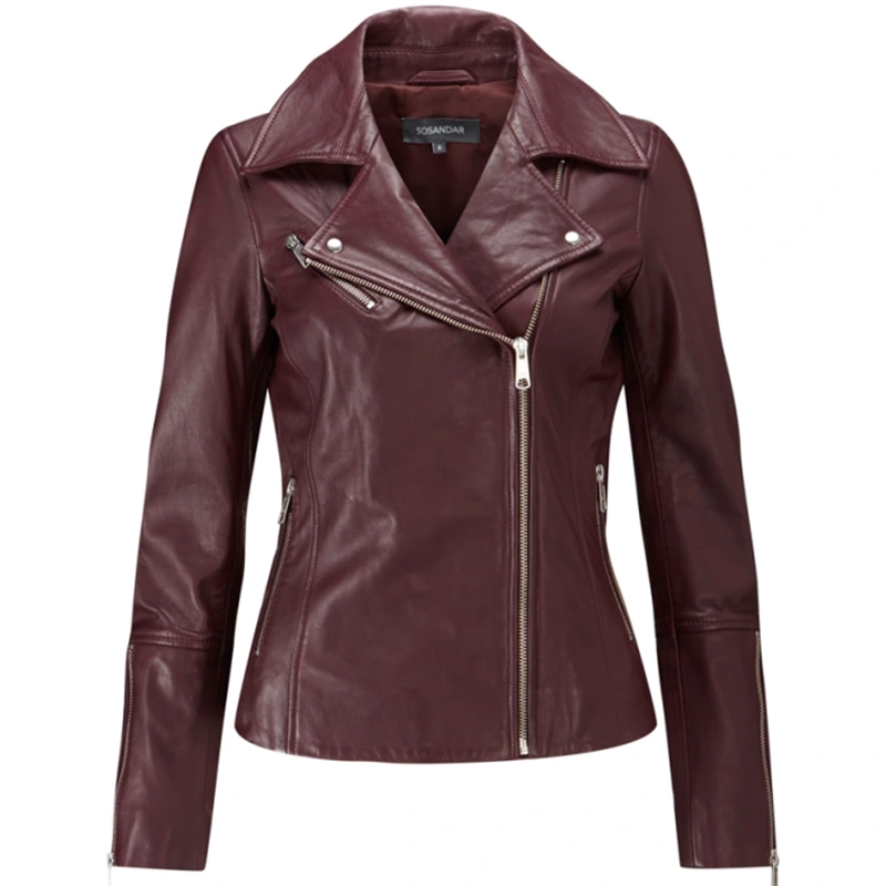 Women’s Burgundy Leather Biker Jacket