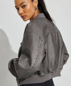 Be the first to review “Crop Washed Faux Leather Bomber Jacket”
