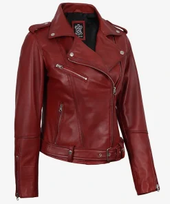 Margaret Red Women’s Biker Leather Jacket