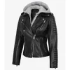- Classic biker silhouette with asymmetrical YKK front zipper closure and wide lapel collar.