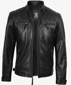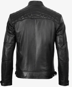 Men’s Black Real Leather Quilted Cafe Racer Jacket