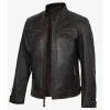 Men?s Cafe Racer Rub-Off Brown Lambskin Leather Jacket