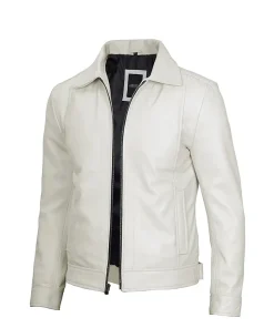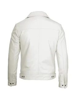Men’s Off-White Full Sleeves with Snap Button Closure Real Leather Jacket