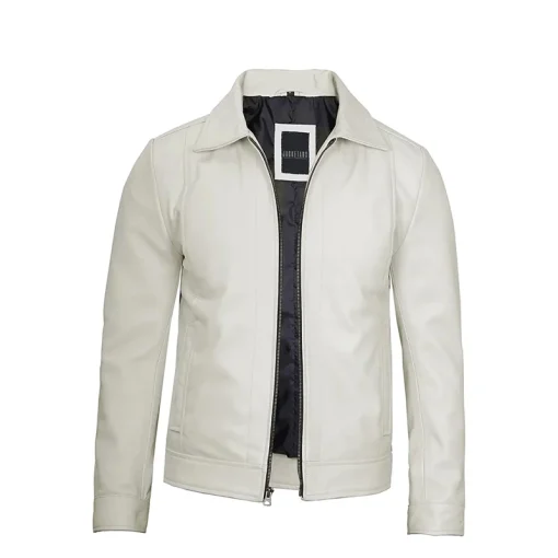 Men’s Off-White Full Sleeves with Snap Button Closure Real Leather Jacket