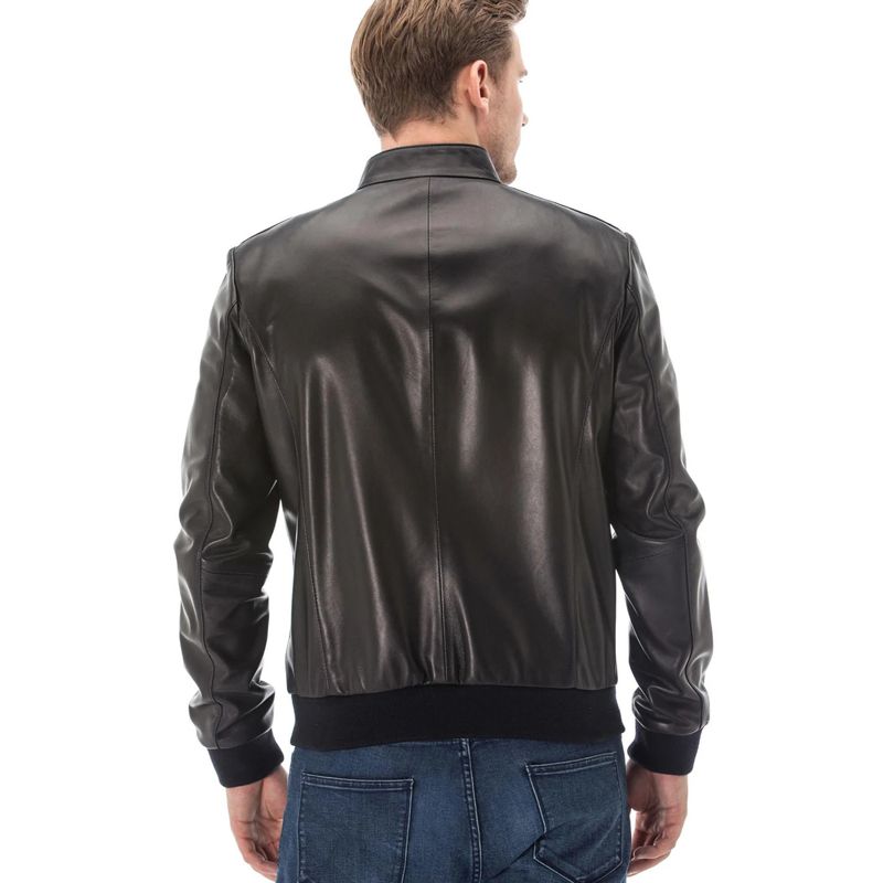 Real Navy-Blue Leather Printed Jacket For Men’s