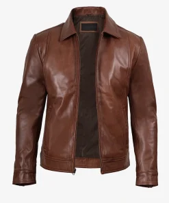 Reeves Men?s Harrington Cognac Brown Real Leather Jacket