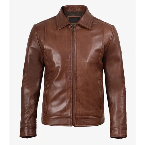 Reeves Men?s Harrington Cognac Brown Real Leather Jacket