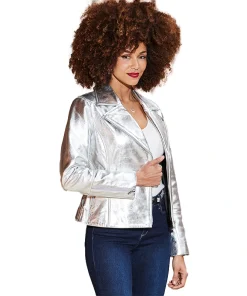 Be the first to review “Silver Metallic Leather Biker Jacket”