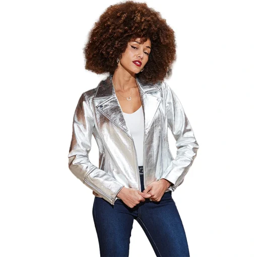 Be the first to review “Silver Metallic Leather Biker Jacket”