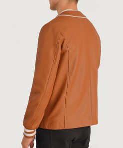 Willis Tan Brown Leather Varsity Jacket For Men’s