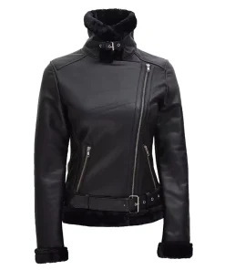 Women’s Black Asymmetrical Shearling Leather Jacket