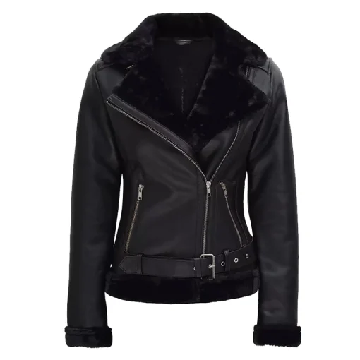Women’s Black Asymmetrical Shearling Leather Jacket