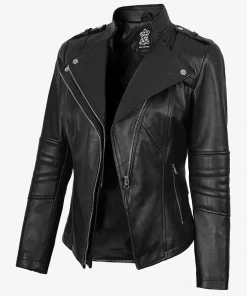 Women’s Black Leather Biker Style Jacket