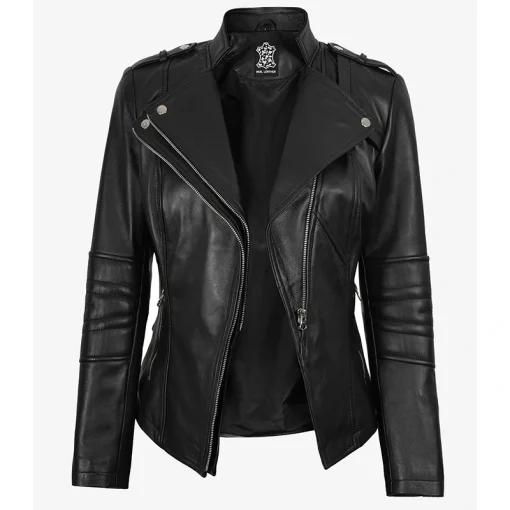 Women?s Black Leather Biker Asymmetrical & Stylish Jacket