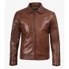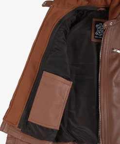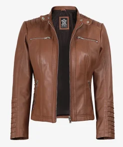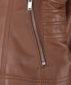 Women’s Cognac Brown Leather Jacket With Removable Hood