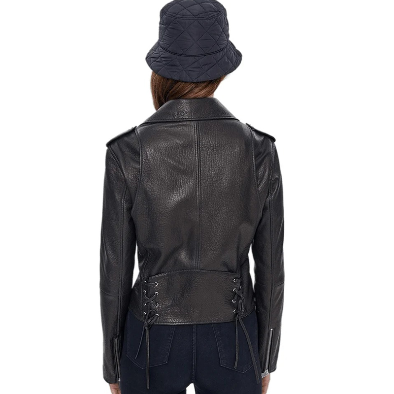 Women’s Real Black Leather Brando Style Full Grain Biker Jacket