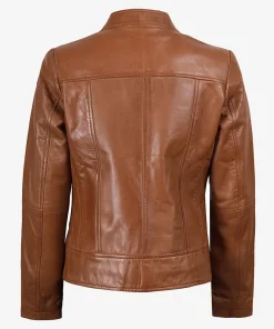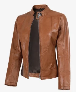Women’s Tan Brown Lambskin Leather Cafe Racer Jacket