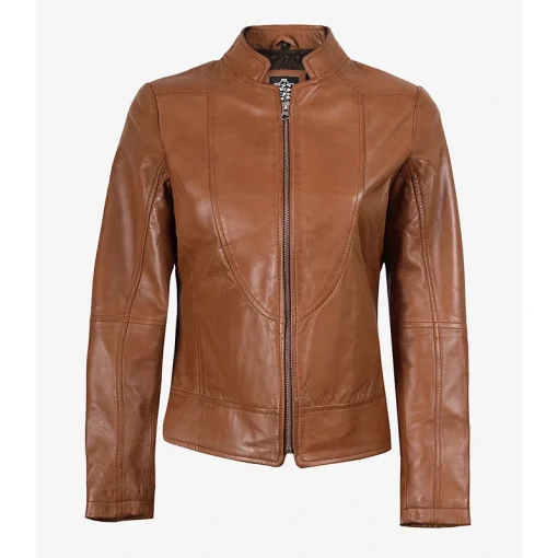 Women’s Tan Brown Lambskin Leather Cafe Racer Jacket